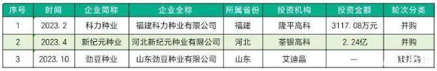 圖:2023年來(lái)我國育種賽道兼并重組情況