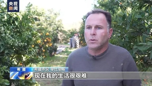 希臘農民 穆比里斯:柑橘在我們這里的批發(fā)價(jià)大概是50或60歐分,但超市里的售價(jià)卻將近2歐元,許多農民都在負債。