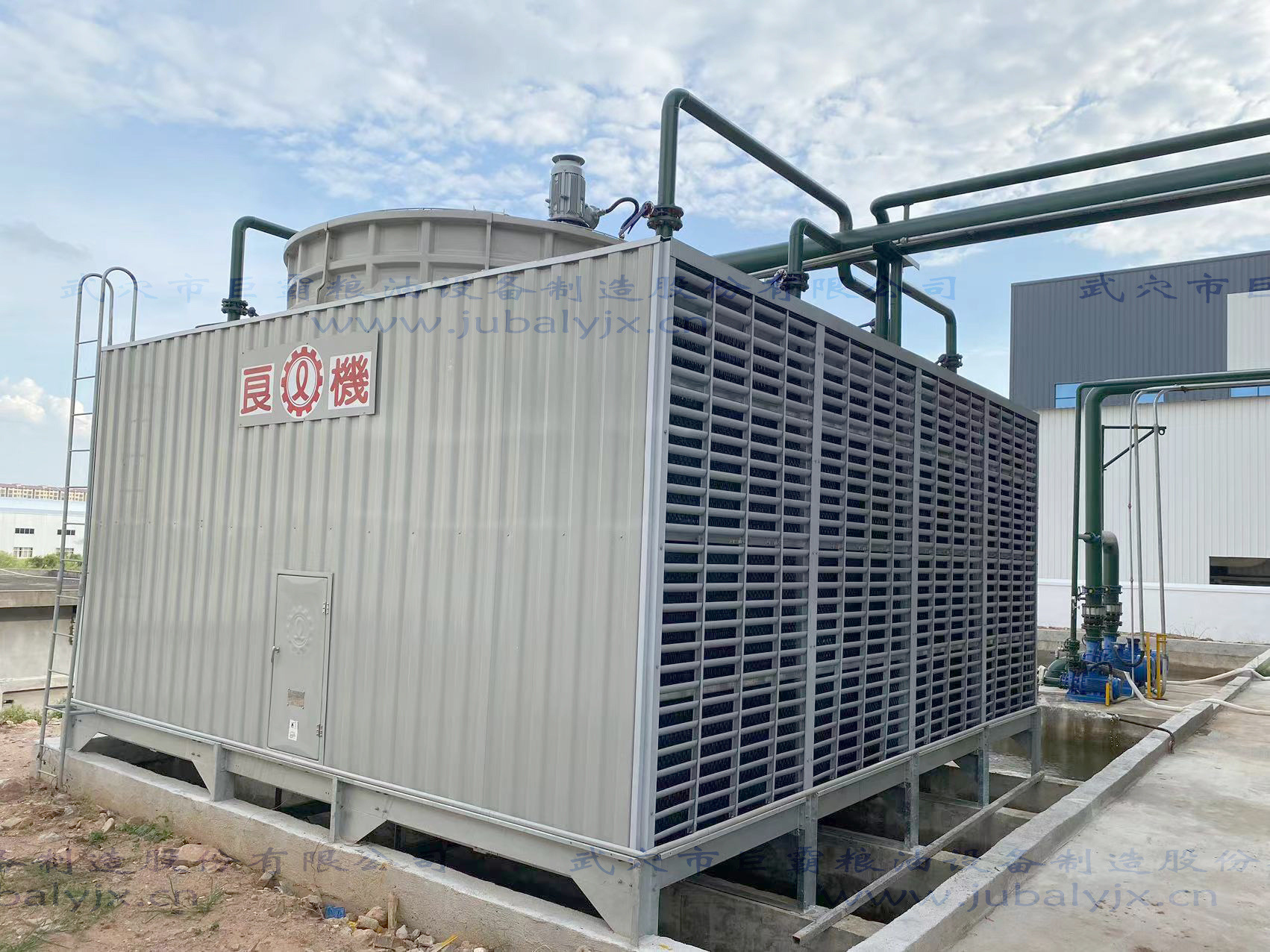 散熱風(fēng)扇:作用在冷凝器內經(jīng)過(guò)換熱后的循環(huán)水在進(jìn)入涼水塔內經(jīng)內部填料把水分散開(kāi)增加散熱面積,散熱風(fēng)扇把換熱后水中的熱量給帶走,從而降低了水溫。